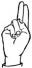 На ћирилици написано АНГЕЛИНА КЛИНЦОВ састоји се из 15 слова [?]. Исписано ћириличном једноручном азбуком за глувонеме: